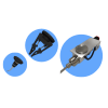 Click on any type of the nozzles in the left bottom corner of the screen to connect it to the robot.